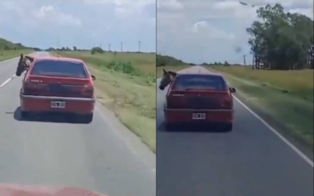En Córdoba, un video de la ruta 17 se volvió viral. Es que un conductor, a la altura de la localidad de Marull, trasladó a un caballo dentro de un Renault 19.
