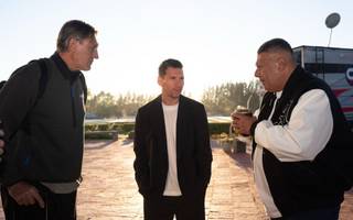 Messi llegó al país para sumarse a la Selección, dándole un gran abrazo a Chiqui Tapia