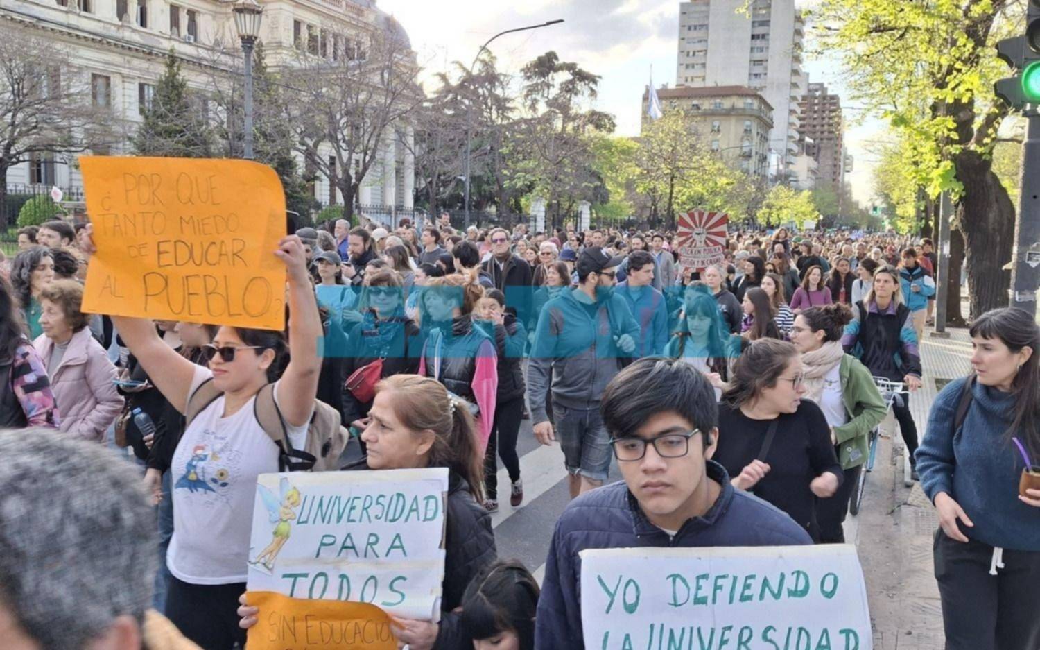 Alumnos, docentes, no docentes se movilizaron bajo la consigna "defensa de la universidad pública y del sistema científico" nacional en el marco de la Marcha Federal Universitaria por las calles céntricas de La Plata.