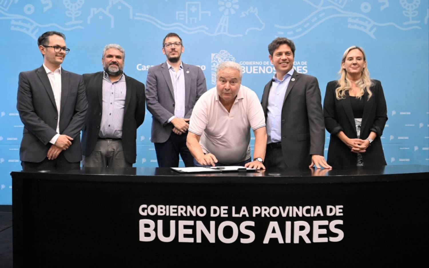 El gobernador Axel Kicillof encabezó ayer junto al presidente del Banco Provincia, Juan Cuattromo, un nuevo acto de firma de contratos de leasing por $8.824 millones para la compra de bienes de capital en 28 municipios bonaerenses.