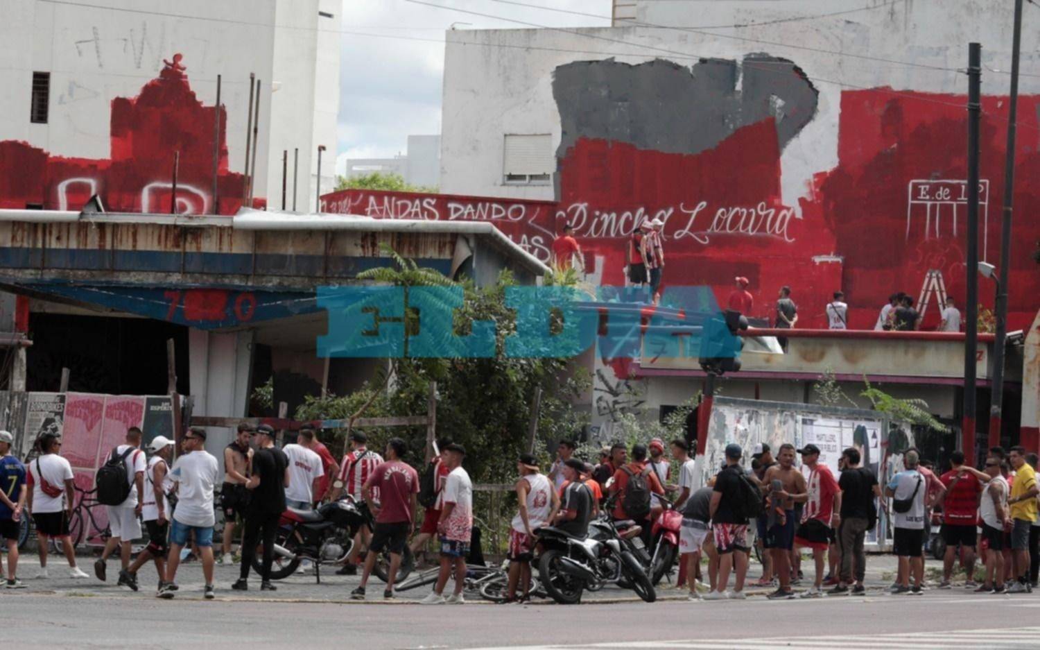 Sin embargo, hoy nuevamente se hicieron presentes varios hinchas del Pincha, que volvieron a tomar el lugar y repintarlo con los característicos colores rojos y blancos.