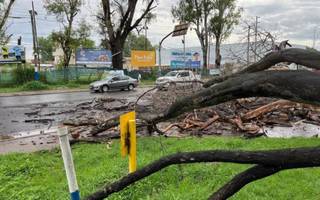 6 y 34. un árbol cayó encima de un auto y le destrozó el capot / EL DIA