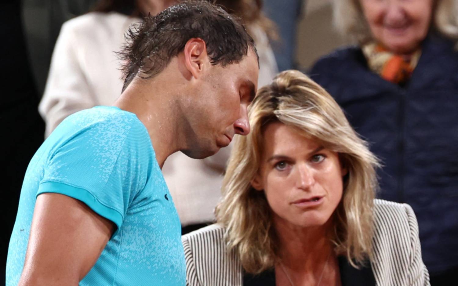 Tras finalizar el partido con Zverev, la extenista Amelie Mauresmo (directora del certamen) se observó como se acercó donde estaba sentado Nadal para expresarle “fuerza y apoyo” en el discurso ante gente en la propia cancha.