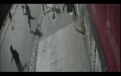 Posteriormente por lo menos seis o siete entraron corriendo hacia la cochera del edificio y se llevaron varias bicicletas y motos. Mientras el resto de la "bandita" hacía de campana.
