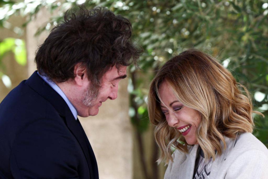 Milei fue recibido por la primera ministra italiana, Giorgia Meloni, con quien se fundió en un cálido abrazo e incluso protagonizaron un breve intercambio cercano en el que el libertario le habló al oído lo que provocó la inmediata risa de la ultraderechista.