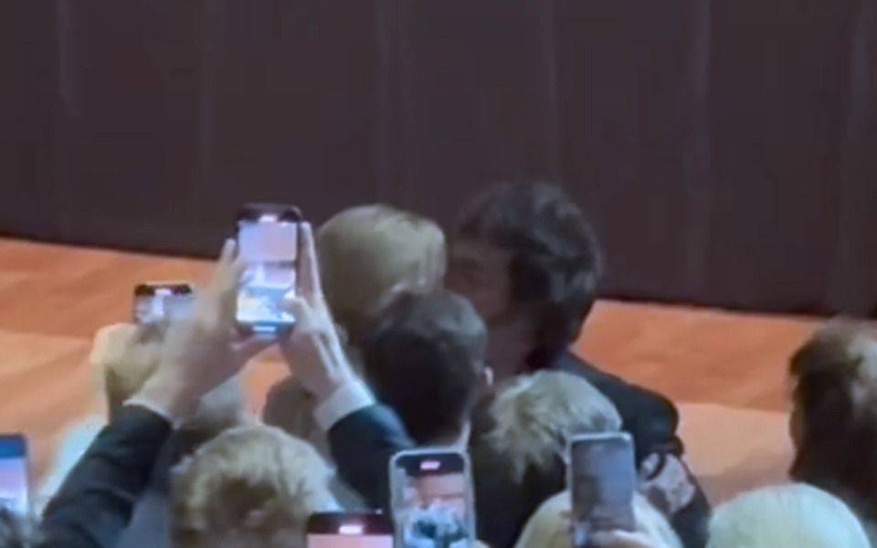 El presidente Javier Milei oficializó hoy su relación amorosa con la ex vedette Amalia "Yuyito" González, a quien besó en la boca durante una actividad en el ex CCK.