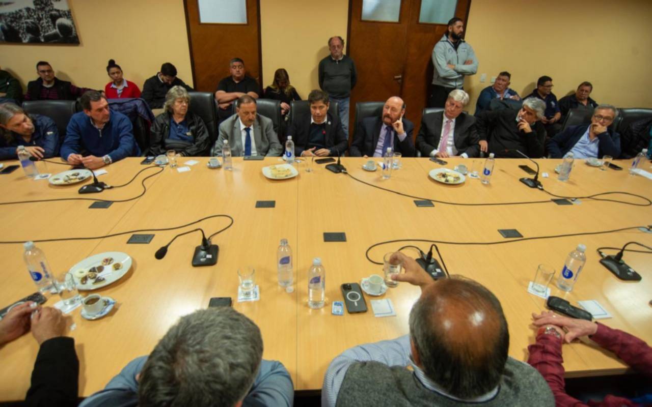 Los dirigentes de la conducción de la CGT recibieron en su sede a los gobernadores peronistas Axel Kicillof (Buenos Aires), Ricardo Quintela (La Rioja), Sergio Zilliotto (La Pampa) y Gildo Insfrán (Formosa), a quienes les pidieron que uno de ellos presida el PJ tras la salida de Alberto Fernández.