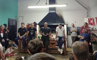 Verón, el vicepresidente Martín Gorostegui y otros funcionarios más de la mesa chica de la CD están tratado de explicarles a un grupo de hinchas los caminos que se pretenden tomar mientras se van conociendo más datos como que el dinero que podría ingresar sería cercano a los 100 millones de dólares.