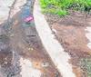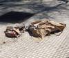 Pedazos de cemento en una vereda del microcentro desde hace varios días