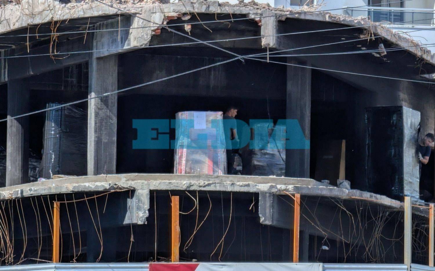 Este viernes se observó (ver fotos) movimientos con elevadores y camiones en donde bajaban cuidadosamente electrodomésticos del primer piso, comenzó con la limpieza del predio.