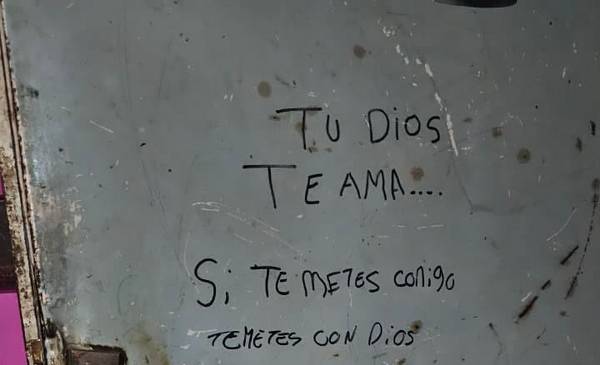 “Tu Dios te ama... si te metes conmigo te metes con Dios”, escribió con un fibrón negro Tony Janzen Valverde Victoriano (20) en la casa su de pareja, en Isidro Casanova, y que fue allanada el viernes 26, cuando se logró su identificación.