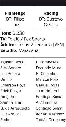 Desde las 21:30, Racing visita a Flamengo en el Maracaná por la primera semifinal de la Copa Libertadores. El árbitro va a ser el venezolano Jesús Valenzuela y va a ser televisado por Telefé y Fox Sports. La Academia busca dar el primer paso en un reducto complejo y ante el favorito para quedarse con el certamen y tendrá el apoyo de 4 mil hinchas.