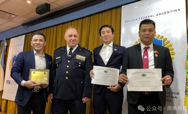Huang Hanqin, presidente de la Cámara de Comercio de Supermercados Chinos de Quilmes, recibió el “Premio a la Contribución Destacada a la Amistad” de la Dirección de Regulación de Comunicaciones de la PFA. El vicepresidente ejecutivo, Yao Liyin, y el secretario general, Wu Rui, también fueron galardonados.