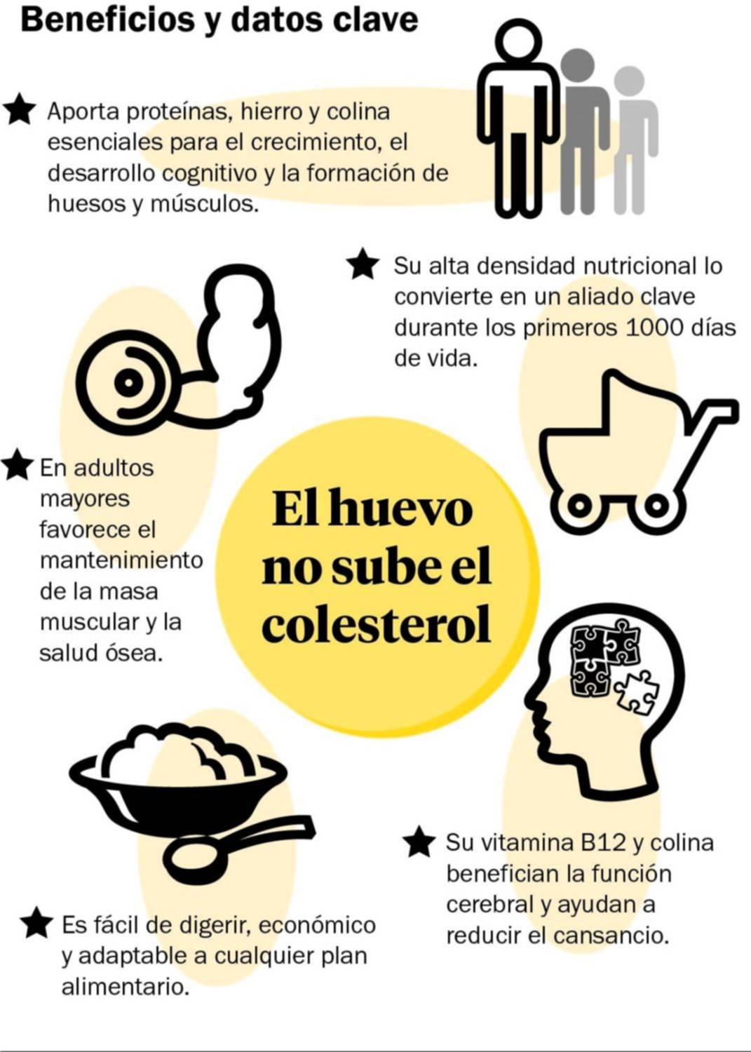 Durante décadas, la yema fue el villano de la nutrición. Hoy, la evidencia científica es contundente: “El consumo de huevo no aumenta significativamente el colesterol LDL (‘malo’) en personas sanas ni incrementa el riesgo de enfermedades cardiovasculares”, señaló Pacho.