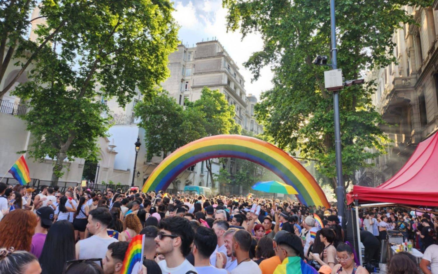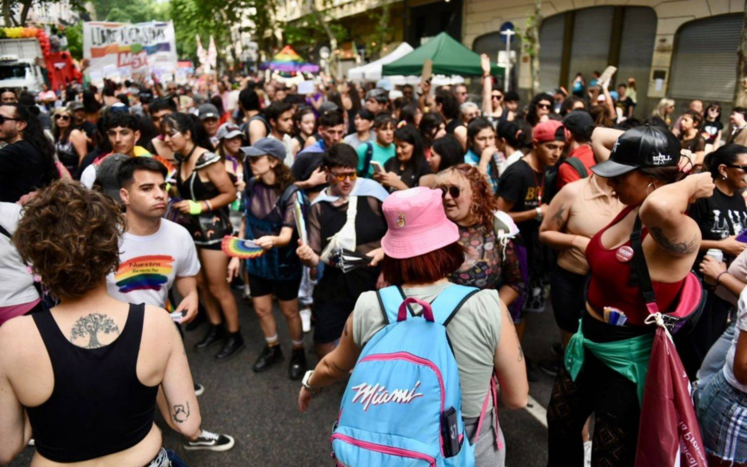 En un gran clima donde los camiones, colores, la música, cánticos, el humo de las parrillas y los aromas se mezclan, todos se encuentran abocados a celebrar, pero también a continuar con los reclamos a los rechazos dictados por el Gobierno, como el DNU que quita los medicamentos a las personas trans, a las niñeces trans y la reparación histórica para las mujeres trans adultas mayores.
