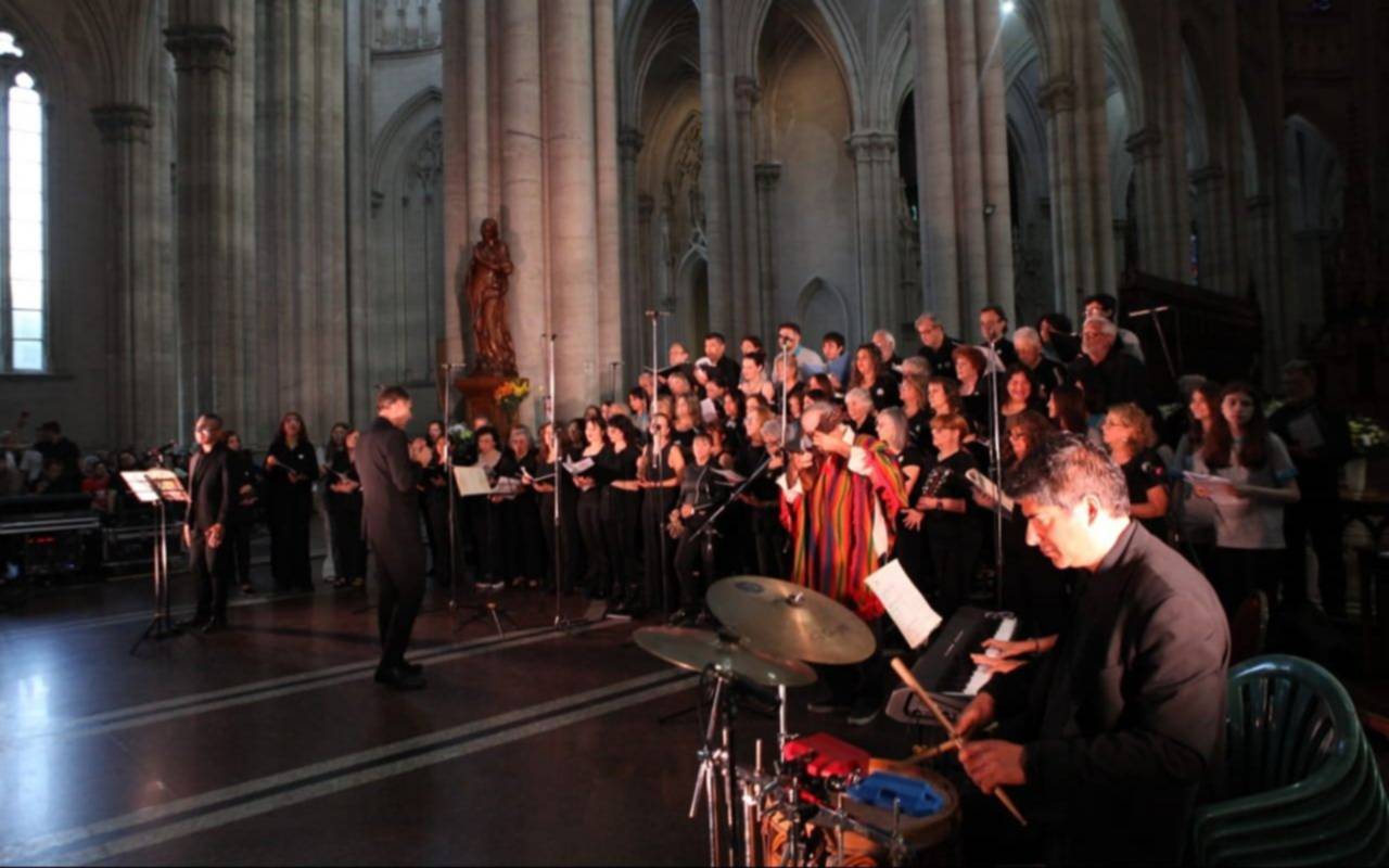 La tradicional obra de Ariel Ramírez convocó a más de 1500 personas dentro del templo y estuvo a cargo de una gran masa coral y musical de artistas platenses que dieron vida a esta pieza profundamente ligada a la identidad cultural nacional bajo la dirección de Andrés Bugallo.