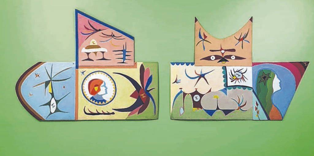 La muestra continúa en la planta alta. El primer espacio, pintado de verde (aunque el naranja se apropia de la escalera), es uno de los grandes hallazgos. Por primera vez, se muestra un costado no tan conocido de la obra de Lido, que tiene que ver con su vida personal. “Teldylido, familia y planchas irregulares” muestra cómo a través de soportes que se oponían a la opulencia del lienzo, el “pintor popular” -como le gustaba ser reconocido- plasmó a los grandes motores de su vida: sus afectos.