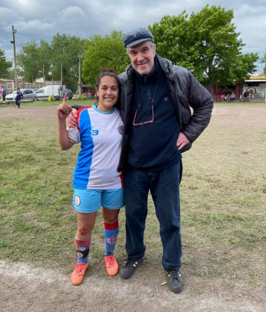 Paula Santillán, jugadora del Senior de Saladero, posa junto al técnico, Héctor “el flaco” Pedersoli, el fundador del club