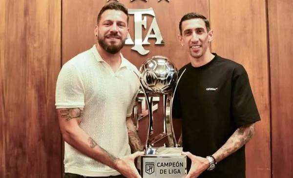 A todo esto, en un rincón del salón, había un objeto tapado con un paño; mientras “Chiqui” Tapia seguía haciendo uso de la palabra, por una puerta lateral ingresaron el capitán del equipo rosarino, Ángel Di María; el arquero y referente Jorge “Fatura” y el director técnico del conjunto “canalla” Ariel Holan.