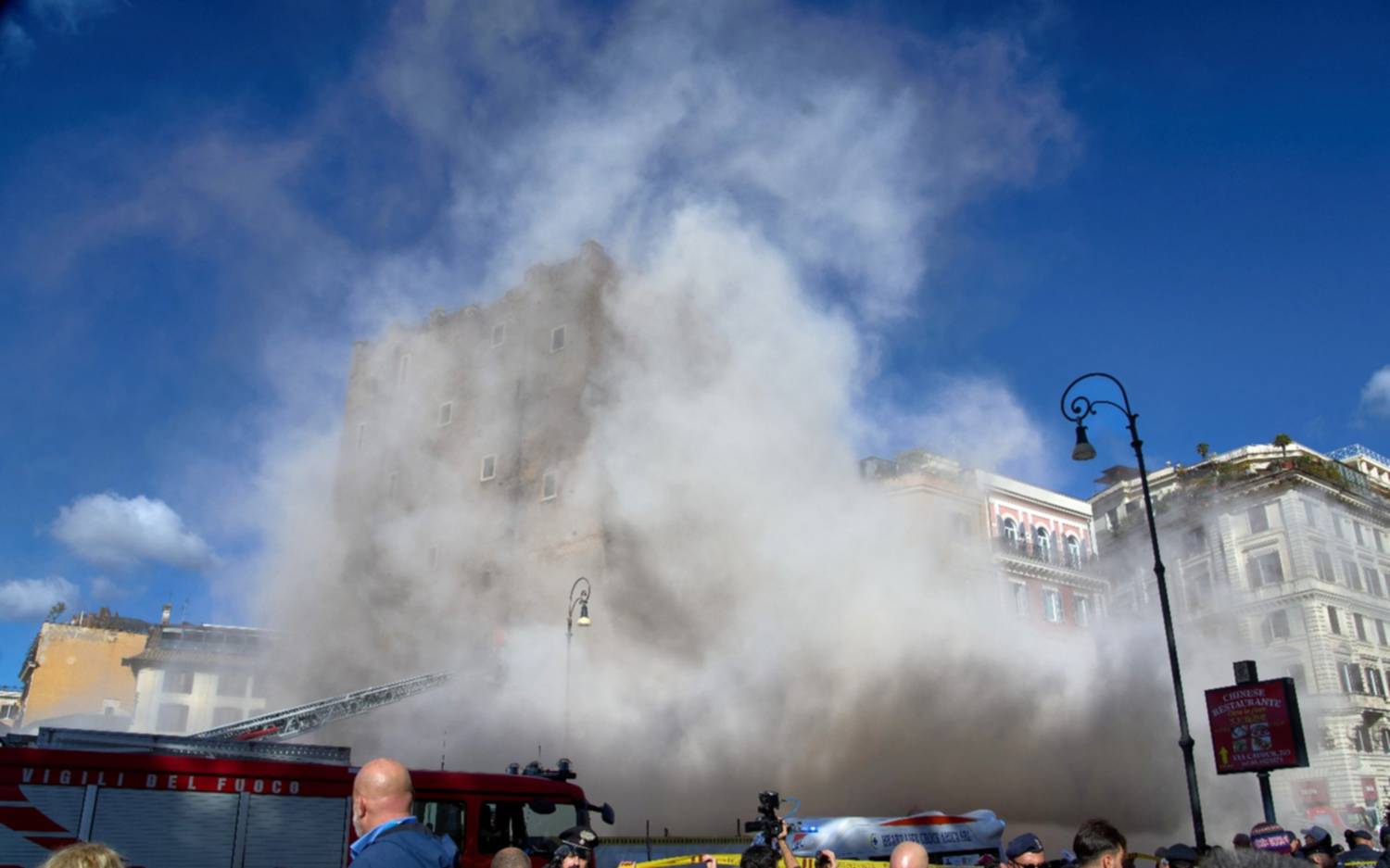 Cientos de turistas observaron cómo los bomberos utilizaron una escalera móvil y llevaron una camilla al nivel superior de la Torre dei Conti. Tres trabajadores fueron rescatados, mientras que uno seguía atrapado dentro de la estructura, según el periódico Corriere della Sera.