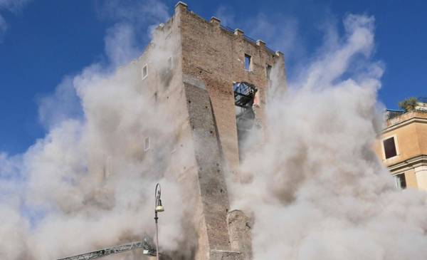 Una torre medieval en el centro de Roma colapsó en medio de una obra de reparación