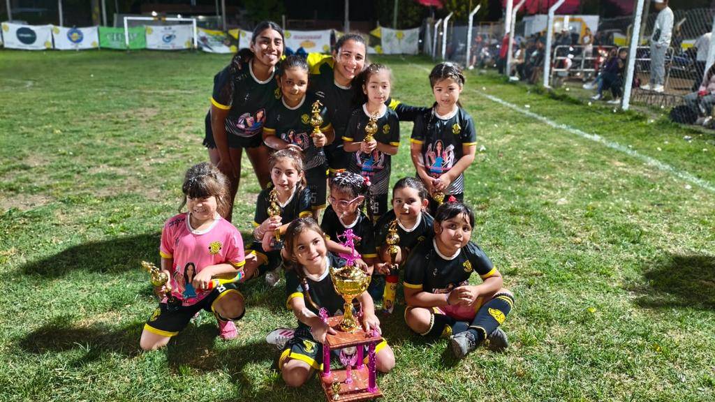 sonrientes y con el trofeo en primera fila, las nenas de la sub 6 de san juan bautista salieron campeonas del torneo amistad
