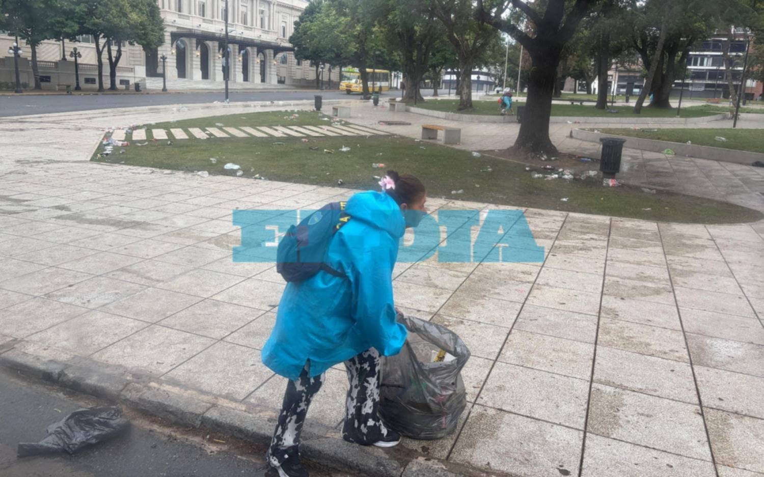 “Está lleno de botellas de alcohol, gaseosas y muchísima mugre. Desde temprano estamos juntando todo lo que dejaron los festejos, hay residuos por todos lados y lleva varias horas dejar la zona en condiciones”, contó uno de los trabajadores de limpieza que se encontraba realizando tareas en la esquina de 7 y 50.