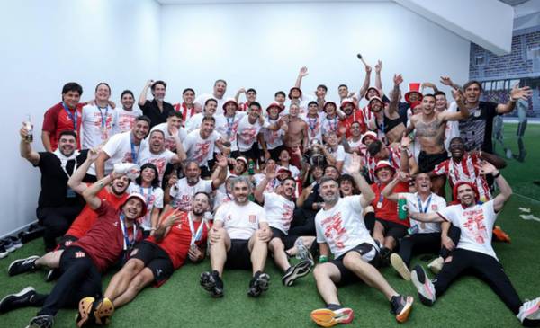 Los jugadores se fueron al vestuario. Muy pocos se bañaron. Fue un momento para abrir alguna botella de champagne y brindar en la intimidad del vestuario. Pero como sucedió en el campo de juego, hubo que desalojarlo. Ya no quedaban hinchas y los operarios necesitaban liberar todo para ponerle punto final a una jornada agotadora. Con Eric Meza a la cabeza con la copa y la música del Negro Tecla pasaron por la zona mixta cantando y bailando. Esta vez sin Mauro Méndez ni Matías Mansilla, otros referentes de aquellos festejos, pero la posta la tomaron otros compañeros.