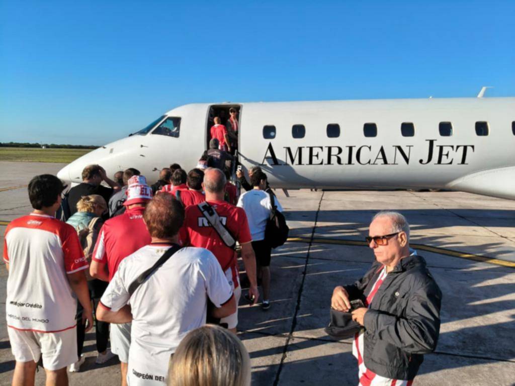 La caravana de colectivos partió de unas cuadras cercanas al estadio pasadas las 2 AM. La Policía dio la orden una vez que los hinchas comieron, se refrescaron y llenaron las heladeras. En paralelo salió el colectivo del plantel rumbo al aeropuerto, totalmente desbordado. Los vuelos que estaban anunciados para esa hora lo hicieron a la mañana. Incluso los propios jugadores no pudieron ingresar sino esperar en un terreno pegado al lugar hasta que el avión estaba en pista. Si hasta se cruzaron cánticos con hinchas de la Academia que estaban muy molestos con la demora.