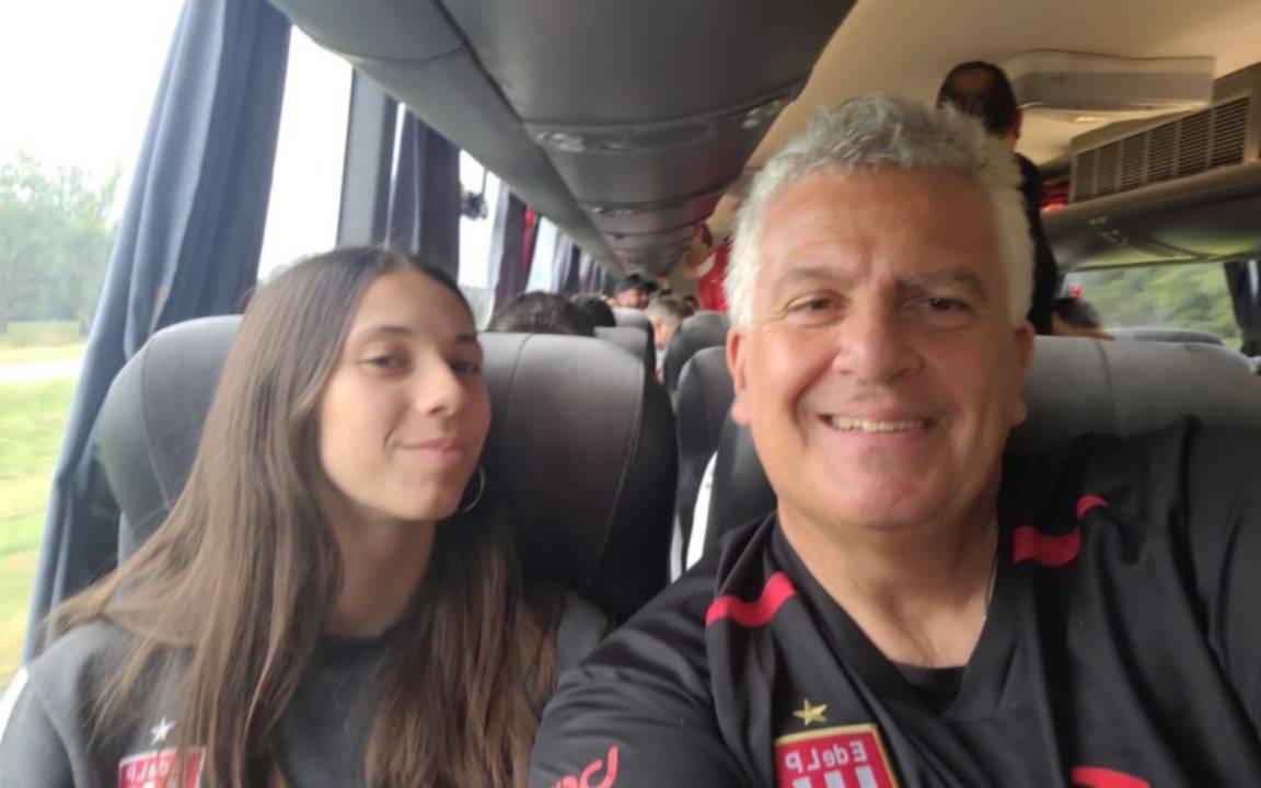 Verón y otro viaje como hincha: en micro junto a su hija Mila