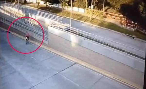 Según revelan las imágenes, la víctima, identificada como Fernando Celeste, entraba al paso a nivel cuando de un momento a otro, la bicicleta se le salió de control mientras iba en bajada y se estrelló contra los muros.