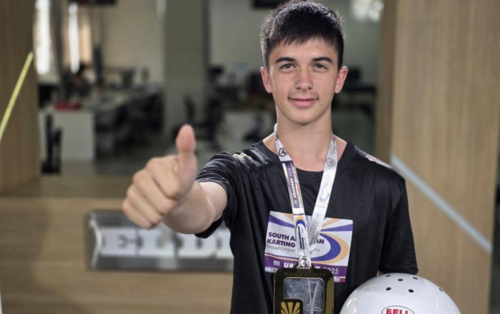 El piloto platense tiene 15 años y pese a su escasa experiencia en el deporte motor, ya tuvo su debut a nivel internacional con una destacada actuación en el Sudamericano de Uruguay