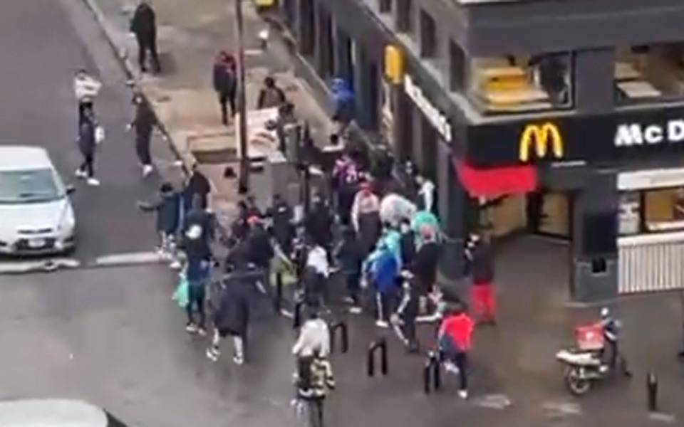 Un video proveniente de un edificio lindero a la intersección céntrica de La Plata arrojó las imágenes de lo sucedido este martes por la tarde. Las escenas muestran a algunos hinchas enfrentándose, escalando el conflicto y trasladándose hasta dentro del local gastronómico, donde se registraron daños.