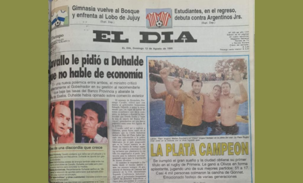 Era domingo 13 de agosto, habían pasado un par de horas del festejo final de los jugadores de La Plata Rugby Club. No solo querían escuchar el pitazo final tras el triunfazo ante Olivos y poder celebrar, sino al otro día ver la tapa del diario de La Plata. ¿Qué decía El Día sobre el primer campeonato del rugby platense?