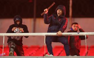La violencia comenzó cuando barras violentos del equipo visitante, que estaban ubicados en una bandeja superior, empezaron a arrojar distintos objetos a los hinchas locales, que se encontraban en una tribuna inferior.
