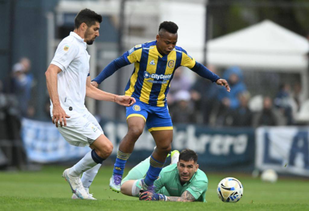 Apenas un minuto después, el arquero formoseño la tuvo que ir a buscar al fondo del arco, ya que Di María comenzó su lujosa tarde marcándola el pase a Enzo Copetti, quien desbordó y envió el centro desde la derecha para el gol fácil debajo del arco de Alejo Véliz, quien anticipó a Giampaoli para poner el 1 a 0 para el Canalla.
