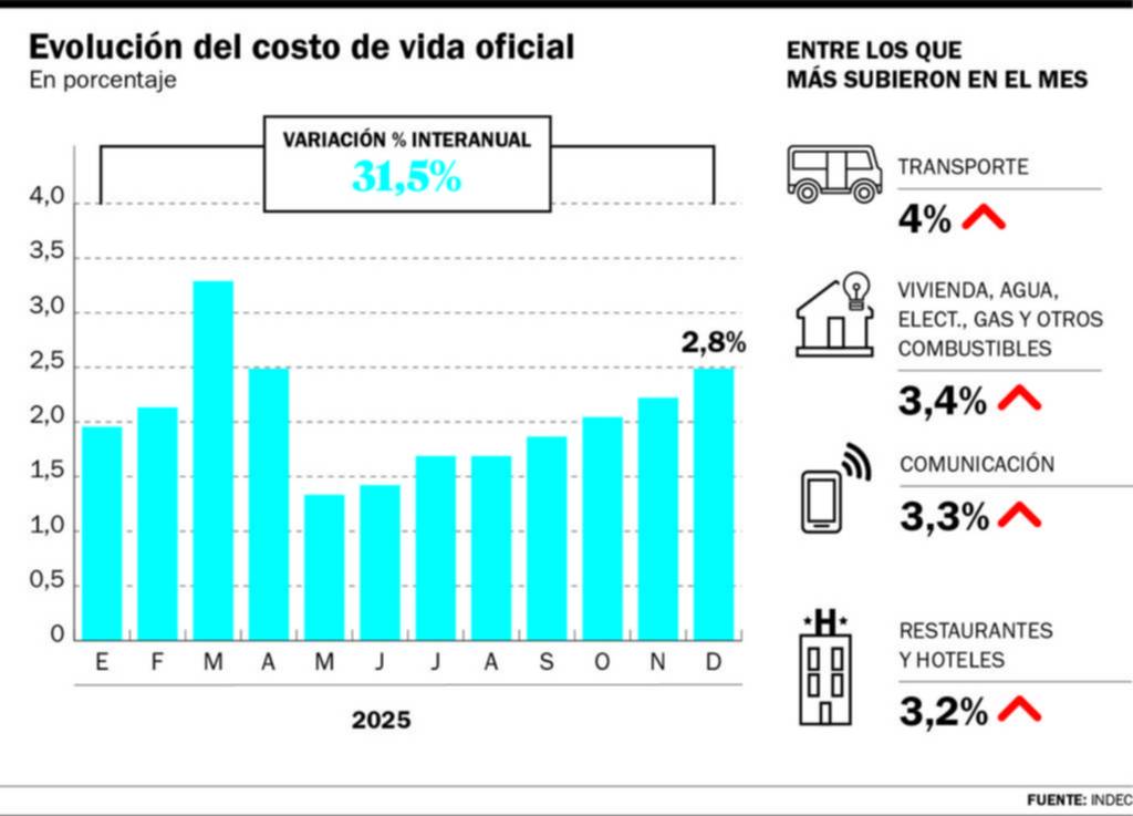 Fue de 31,5% y el Gobierno lo festejó aunque analistas advierten que pudo haber encontrado su piso. En diciembre se aceleró a 2,8% por transportes y servicios