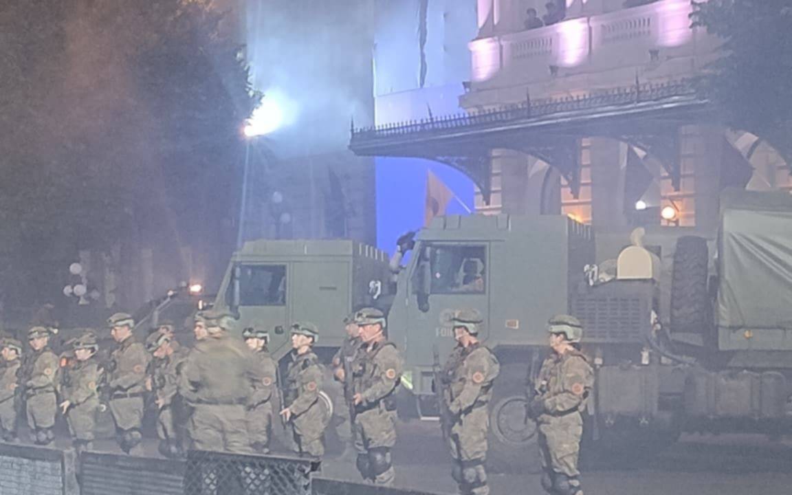 Según se pudo observar y durante una recorrida que hizo el móvil de EL DÍA por la zona, el pasaje Dardo Rocha ya luce intervenido con una cuidada ambientación que recrea un ficticio gobierno europeo. En el lugar se instalaron garitas de seguridad, estructuras escenográficas y numerosas banderas rojas y amarillas que refuerzan el clima político que propone la producción.
