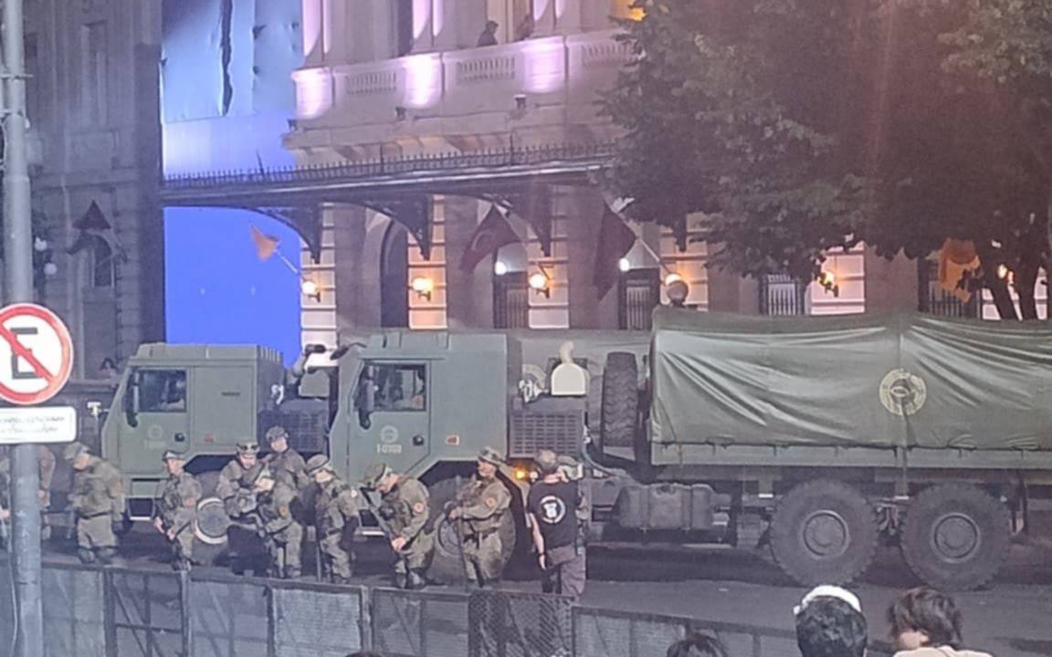 En los estandartes puede leerse la consigna “Gobierno de Unidad. Sudamérica en su destino”, una de las frases centrales que formarán parte de la estética del film y que anticipa el tono de la historia que se desarrollará en escenarios emblemáticos de la ciudad.