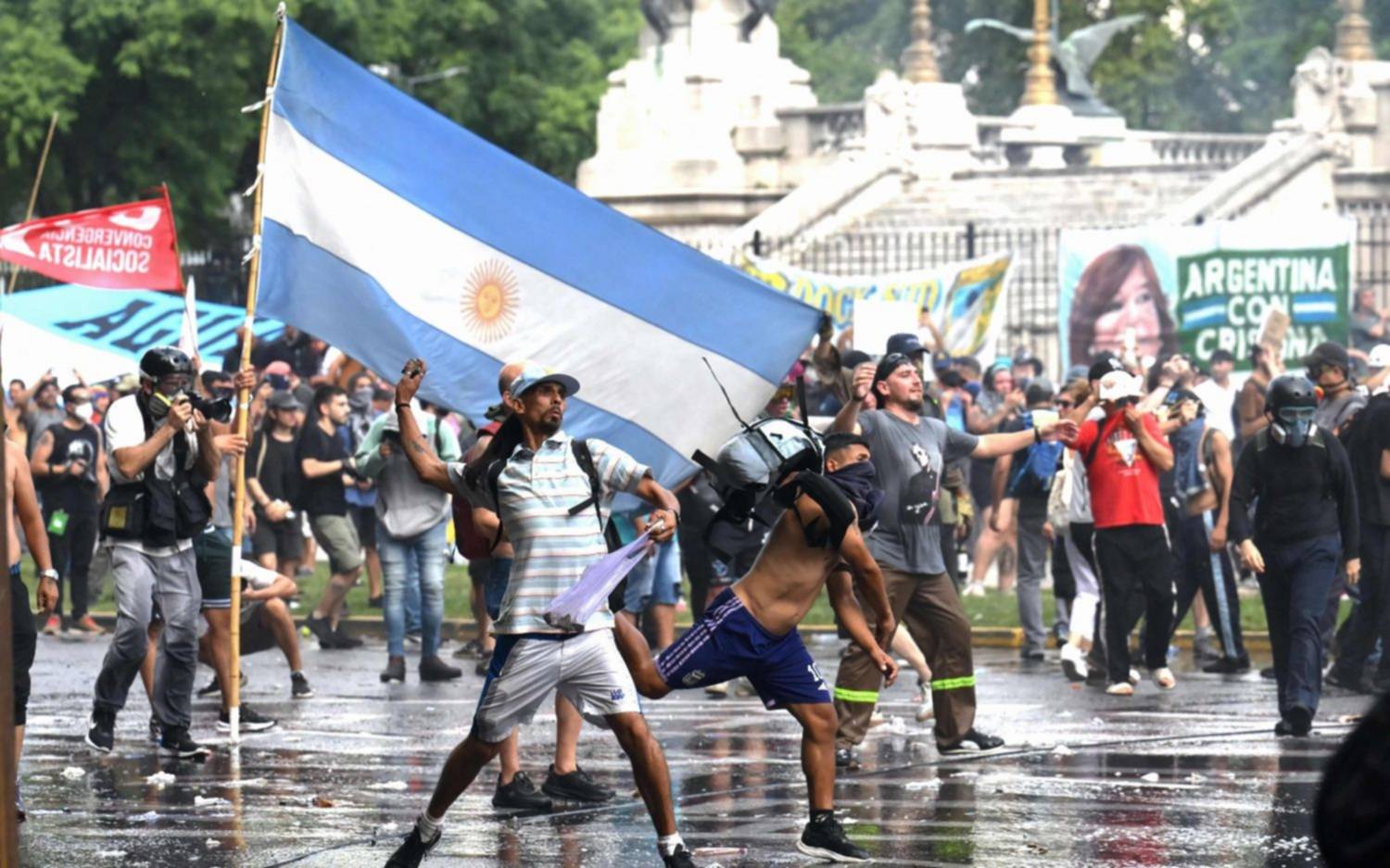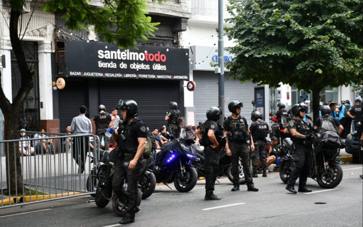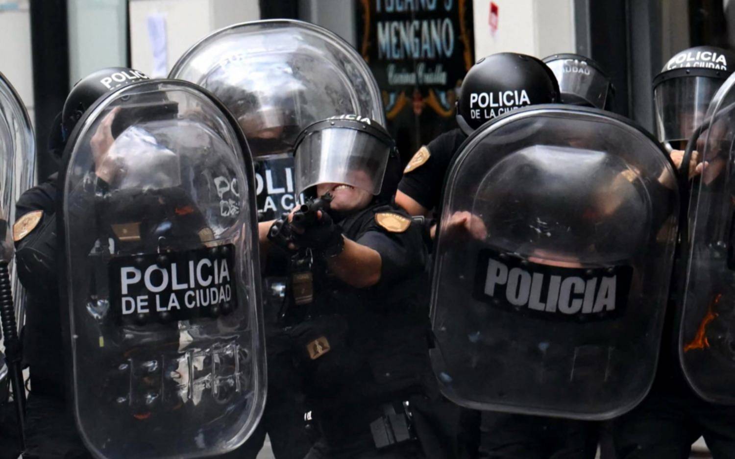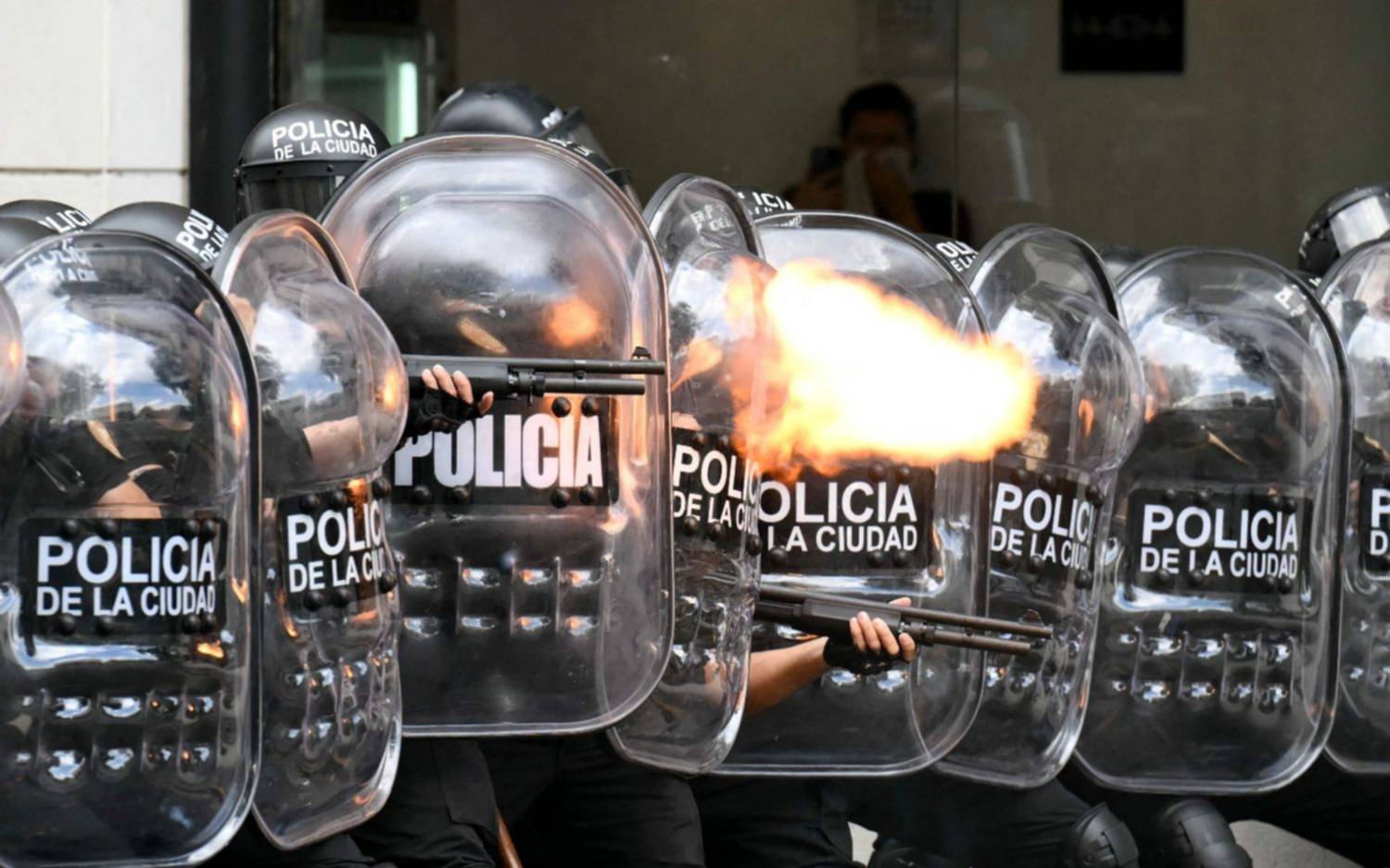 Tras el lanzamiento, se produce una rápida reacción de las fuerzas de seguridad, que avanzan con el camión hidrante y disparos de balas de goma para dispersar a quienes participaban de los disturbios. El primer cordón estaba integrado por la Policía Federal, mientras que el segundo y tercer anillo correspondían a la Policía de la Ciudad.