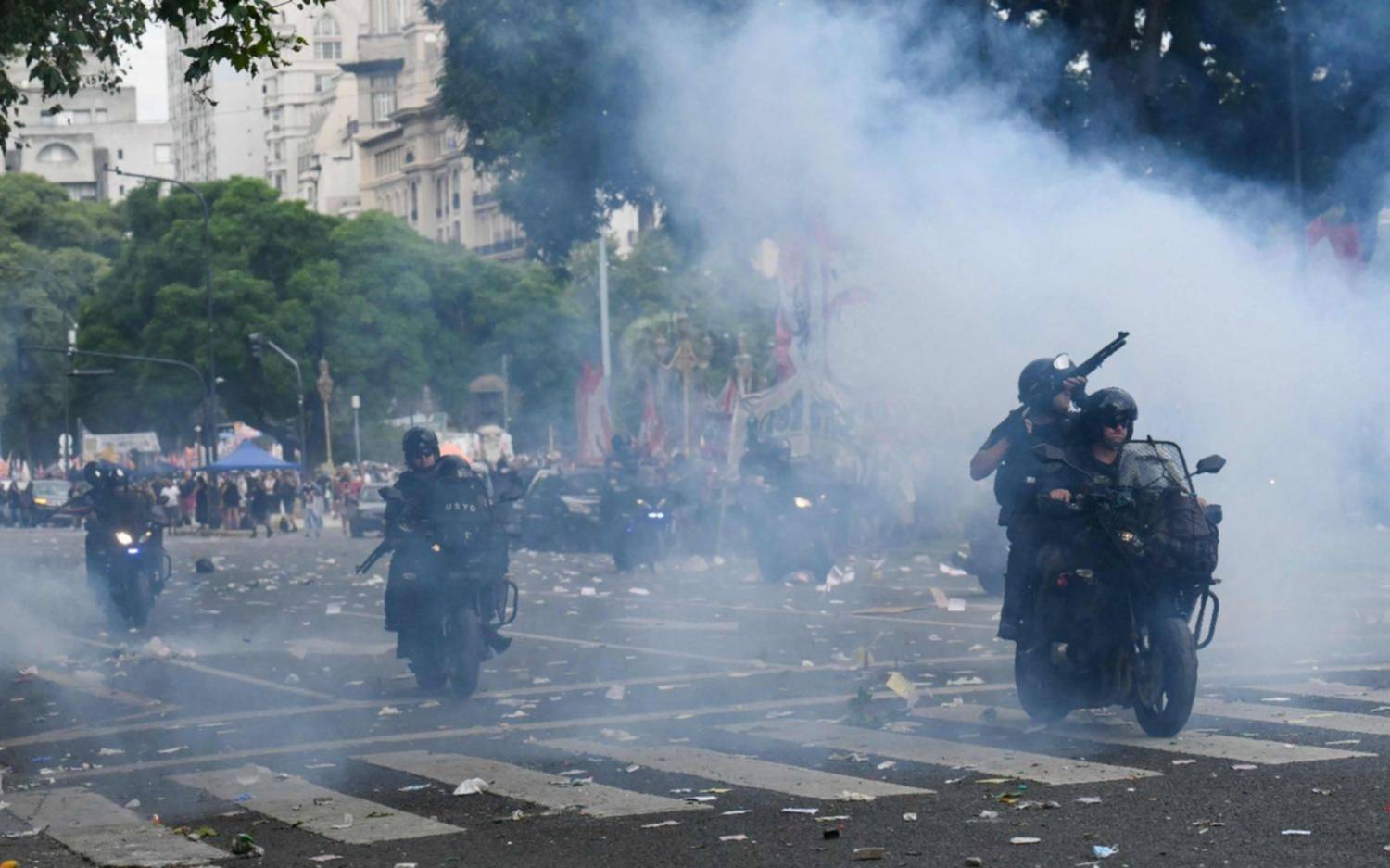 La movilización tenía ligar mientras en el Senado se debatía la reforma laboral, un proyecto rechazado por el peronismo y por organizaciones sindicales como la CGT y las dos CTA.