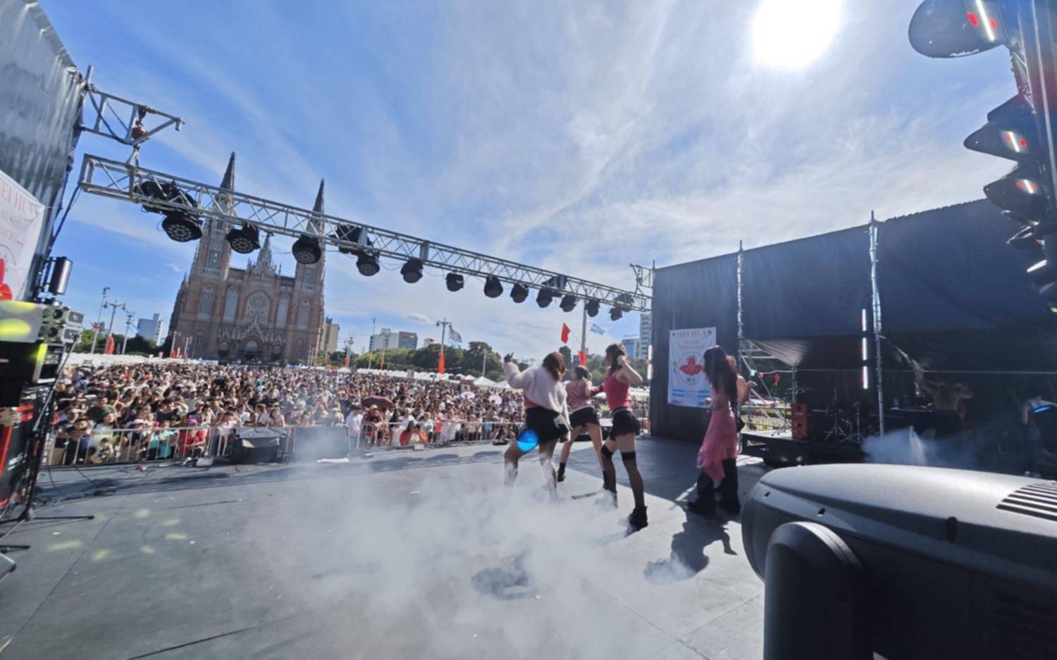 Plaza Moreno es sede de una celebración de escala continental por la que ya pasaron 300 mil personas y se espera otra convocatoria masiva para hoy. Espectáculos artísticos, artes marciales y gastronomía en la propuesta