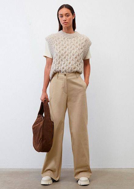 El chaleco de lana vuelve a ocupar un lugar central en el entretiempo. Tejido liso o con relieve, suma abrigo ligero y permite superponer camisas oversize de denim o cuadros, generando volumen controlado y movimiento en la silueta.