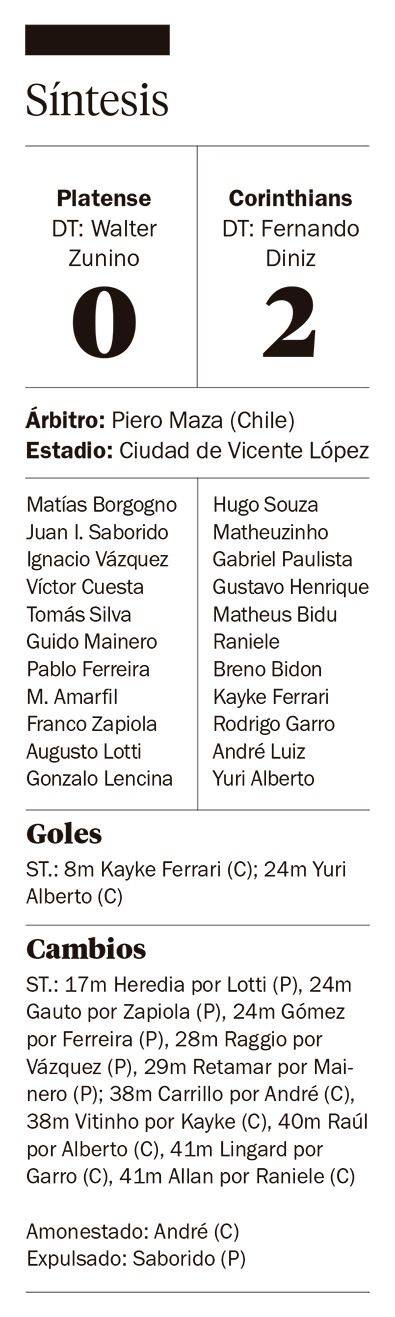 En la noche de Vicente López, Platense cayó como local 2-0 ante el Corinthians brasilero y tropezó en su debut en la Copa Libertadores.