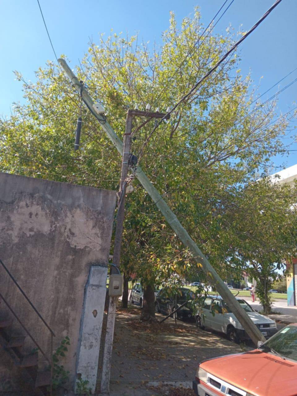 En 46 entre 131 y 132, Gambier, un poste con cables quedó apoyado en los cables de otra línea. “Es un peligro para los transeúntes y para las viviendas. En cualquier momento nos quedamos sin luz”, se indicó desde la zona. “Los vecinos han realizado reclamos a la Municipalidad y a Edelap y no han venido a solucionar el problema”, apuntó un frentista.