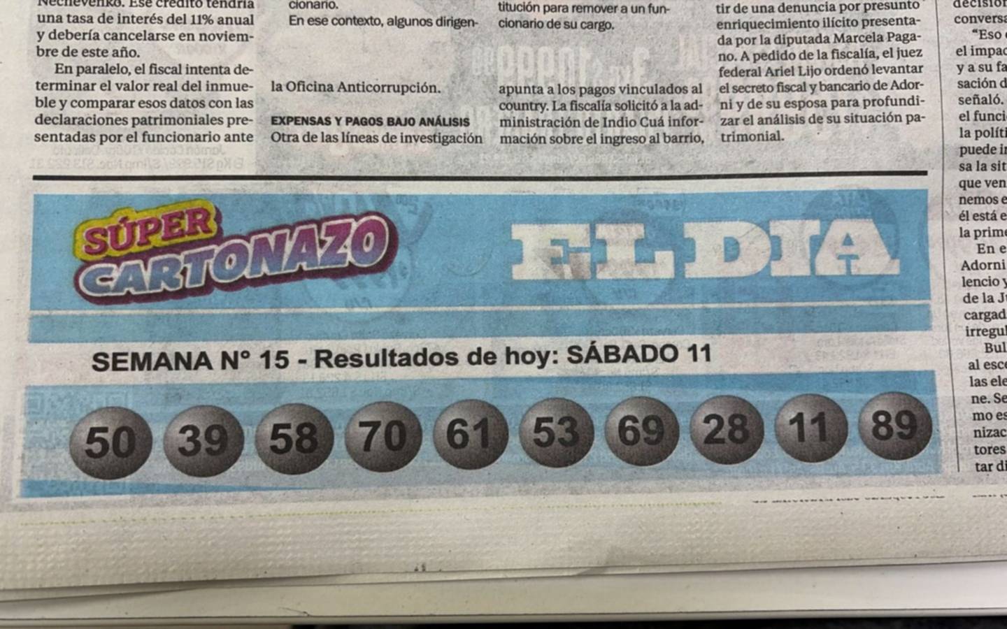 Cartonazo por $4.000.000: los números que salieron hoy sábado con EL DIA