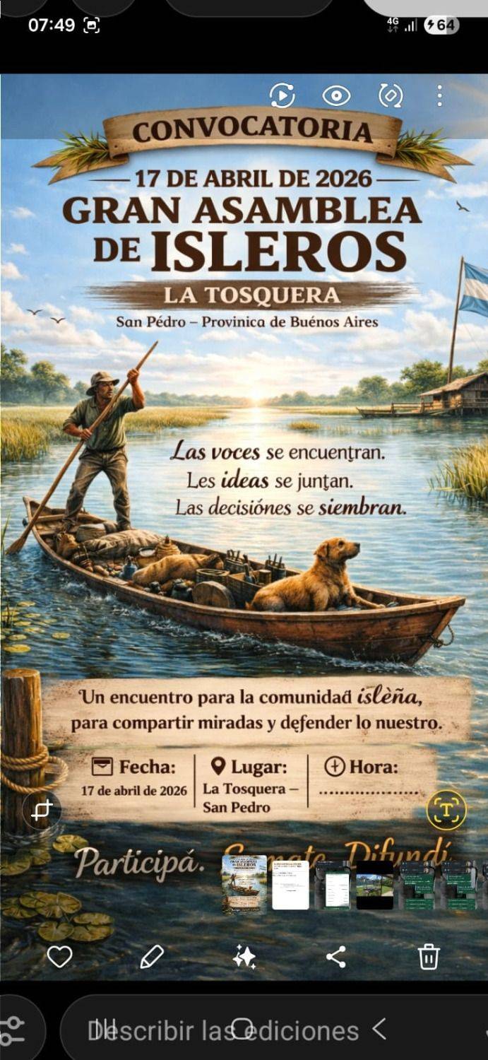 Finalmente, los firmantes invitaron al Gobernador —o a representantes de su gestión— a recorrer el Delta "para conocer de primera mano la realidad de los isleños". Mientras tanto, la “Gran Asamblea” de San Pedro se perfila como un punto de encuentro clave para debatir el futuro de la región y unificar reclamos en defensa del territorio y sus habitantes.