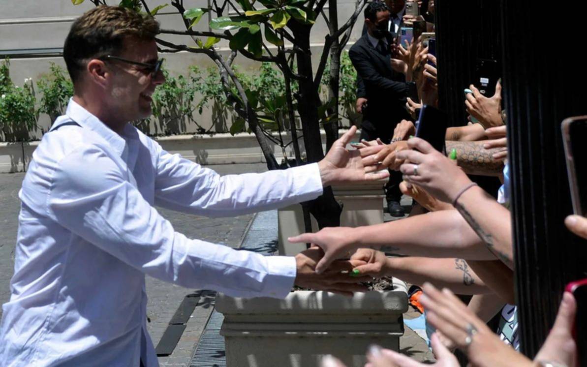 Ricky Martin salió a saludar a sus fans en la puerta del hotel Hyatt y generó una locura total en las calles porteñas.