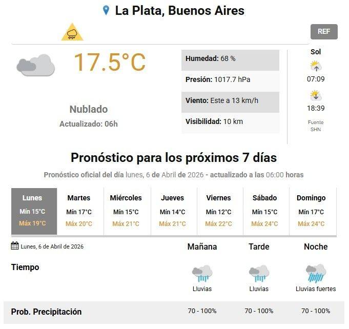 Sin embargo, el punto más crítico se desplazará hacia mañana. Los especialistas coinciden en que será el día en que el fenómeno alcance su madurez. Bajo una alerta oficial por lluvias, la región enfrentará tormentas de variada intensidad con temperaturas que rondarán los 17°C de mínima y 20°C de máxima.