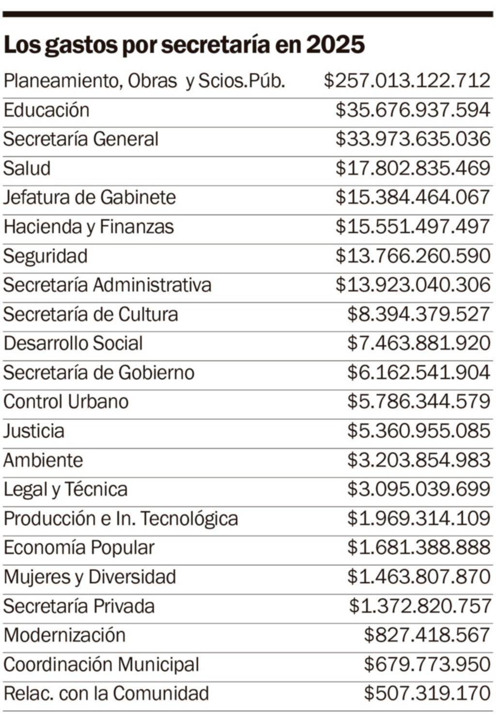 La cartera de Seguridad le sigue con un gasto de 13.766 millones de pesos y la Secretaría Administrativa, con 13.923 millones.